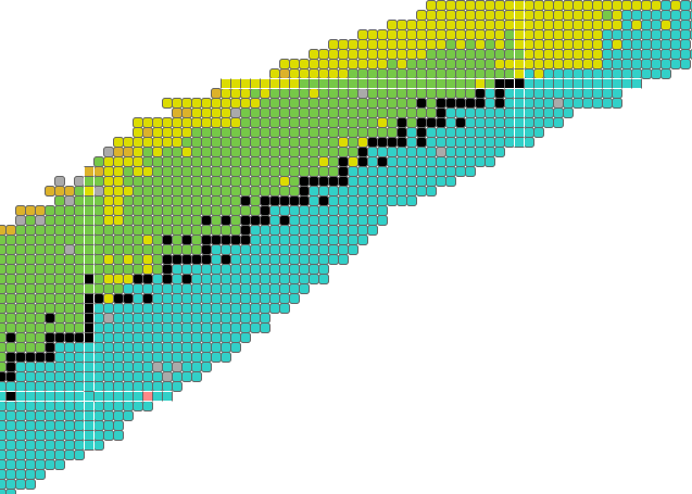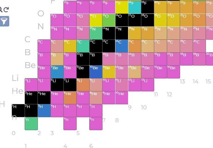 This image is stolen from the IAEA’s isotope explorer linked above. Stable isotopes are black, and form an OBVIOUS staircase structure, with additional stable points having a structured (but unspecified) relationship to the ‘staircase proper’. Isotopes which decay through alpha-emission are yellow, and these constitute a interesting subset of long lived isotopes in the unstable regions beyond Lead and Bismuth which continue the staircase. (Be8 is perhaps the prototype for alpha decay, but it is anomalously short lived.) Green isotopes decay by electron capture or positron emission, while blue isotopes undergo beta decay - both trending toward the staircase of stability. This decay-mode plot shows some interesting things. Proton and neutron emission occurs on the extreme edges, where the most ephemeral and least possibly useful isotopes briefly vibrate before rapidly transitioning back toward the more practical regions we still don’t understand.